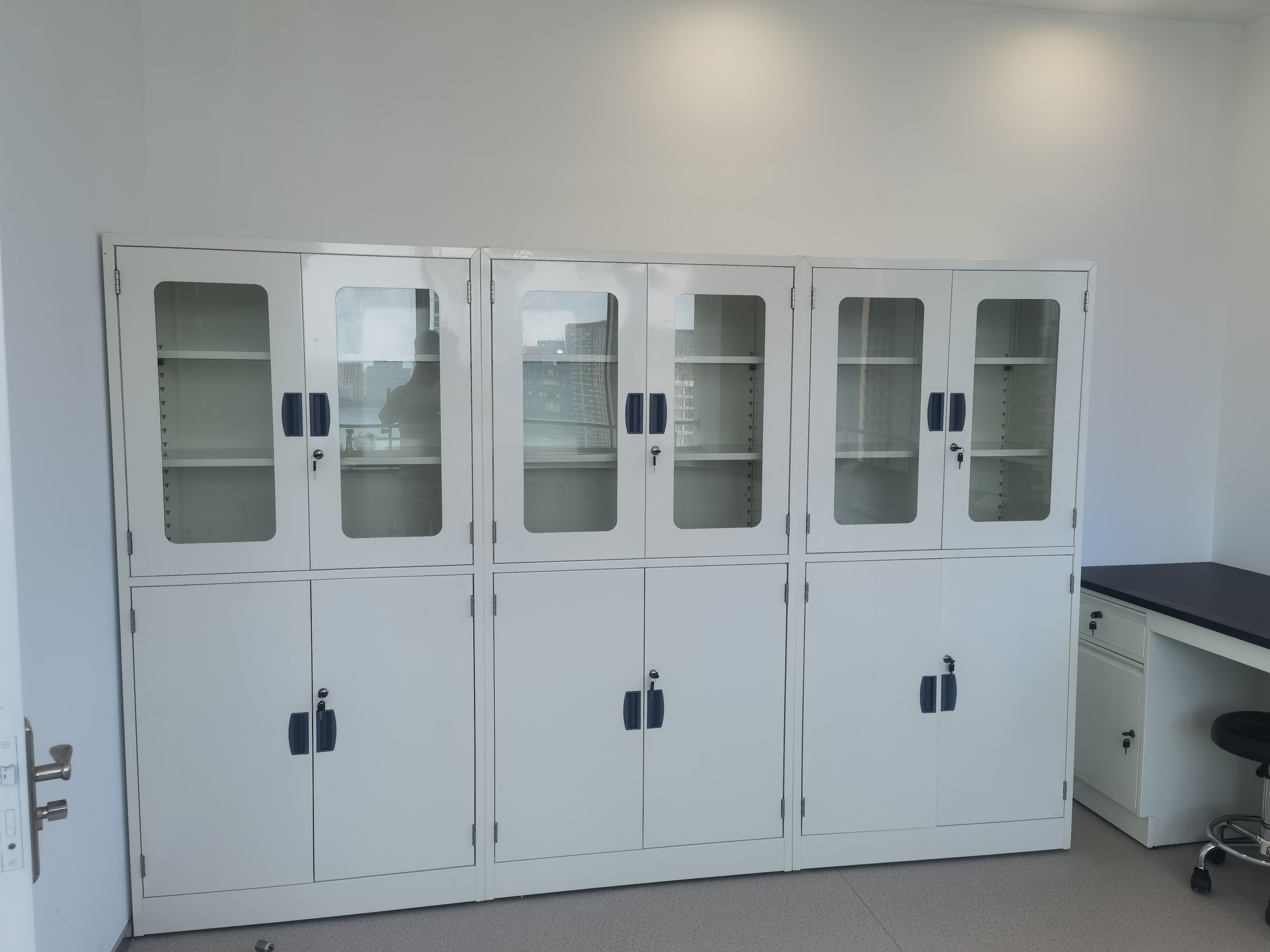 1. 柜体材质:柜体结构采用厚1.2mm的冷轧钢板模压成型,所有柜体表面均经过EPOXY RESIN粉末静电喷涂处理,具有抗酸碱、防化、防潮、耐高温以及耐磨,柜体中隔板由四个钢制层板扣支撑,高度可任意调节,13mm可上下移动,承重为30kg。